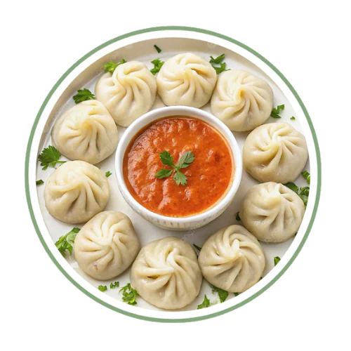 3. Serve immediately alongside steamed momos.