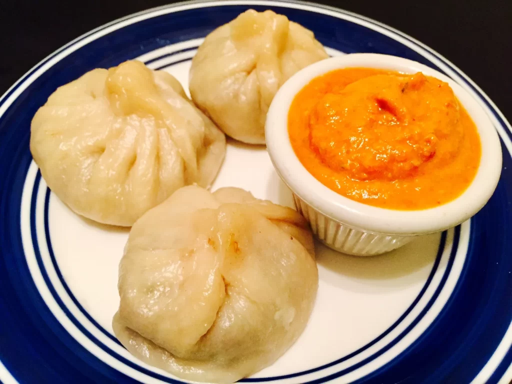 While carrot-filled momos are naturally flavorful, a dipping sauce enhances taste and presentation.