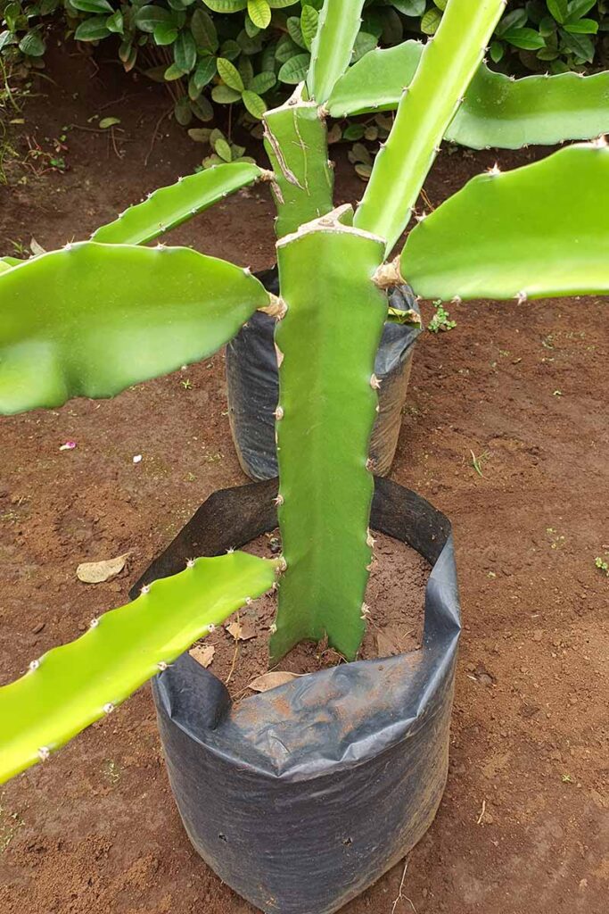Dragon fruit is a climbing cactus, so it requires support as it grows: